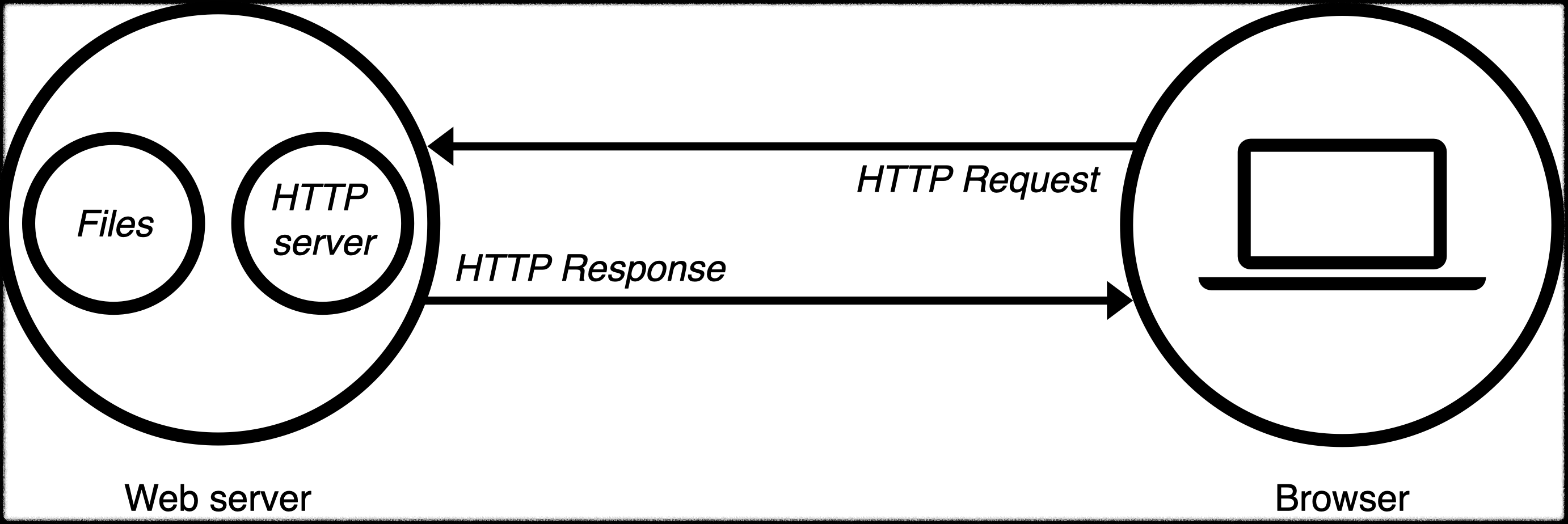 아래 그림을 보면 브라우저가 웹 서버에서 불려진 파일을 필요로 할 때, 브라우저는 HTTP를 통해 파일을 요청함.