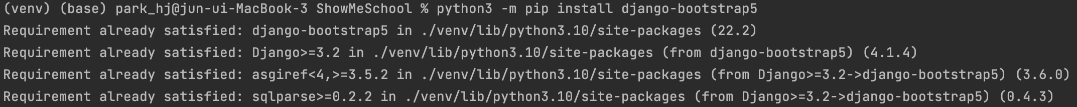 저는 그전에 설치해서 Requirment~~가 뜨지만 처음에 설치하면 package설치가 완료됩니다.